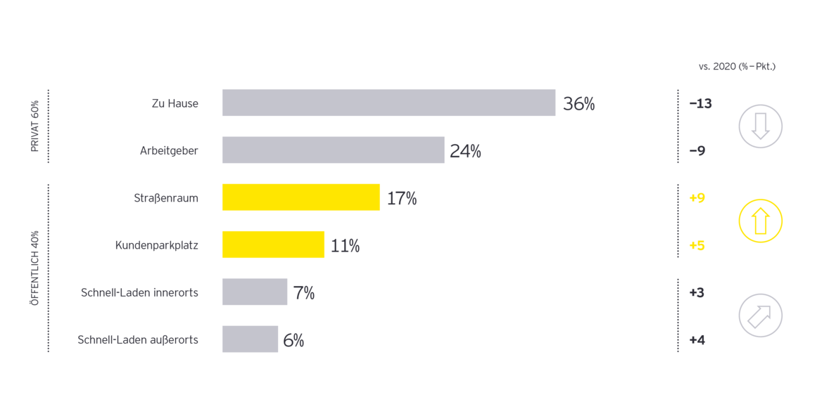 Umso dringlicher ist der kontinuierliche Ausbau der Ladeinfrastruktur. Das unterstreicht eine aktuelle EY-Studie. Dieser zufolge laden immer mehr Menschen ihr Elektroauto unterwegs anstatt zuhause an der eigenen Wallbox.