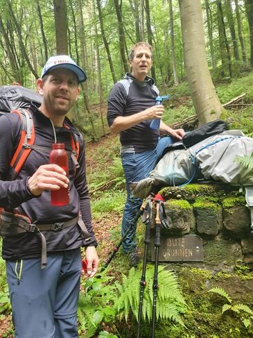 Michael Gies und Torsten Braun können stolz sein. Sie trotzten tropischen Temperaturen und starkem Regen und zogen ihren Marsch durch. Und das außerhalb unserer Komfortzone, in der wir überall sauberes, fließendes Wasser gewohnt sind. An manchen Tagen war es hart, Motivation zogen sie aus der schönen Landschaft mit den herrlichen Quellen und der Unterstützung von vielen Menschen auf ihrem Weg. Manche schlossen sich für ein paar Kilometer an, am Zielort St. Martin gab es einen herzlichen Empfang durch zahlreiche Unterstützer. Michael Gies war überwältig: „Die Mühen und Strapazen waren schlagartig vergessen.“